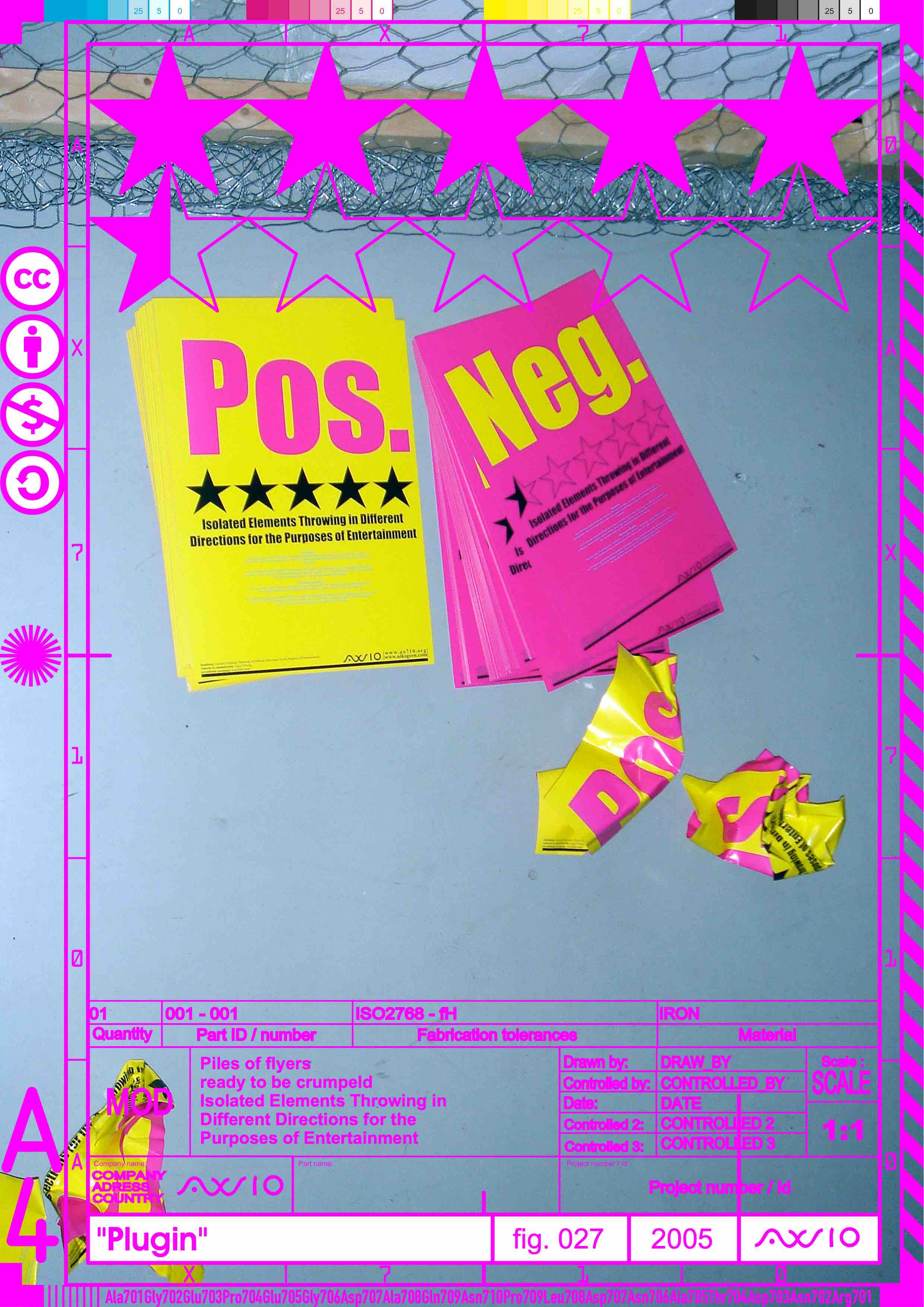Installation for Plug-in, Pakt Amsterdam 2005: non-Stop stand up visual art, poetry, performance, live music, deejays, food and beverages (17 December 2005). Material: Fences made of wood and chicken wire and flyers with the title: Isolated Elements Throwing in Different Directions for the Purposes of Entertainment
